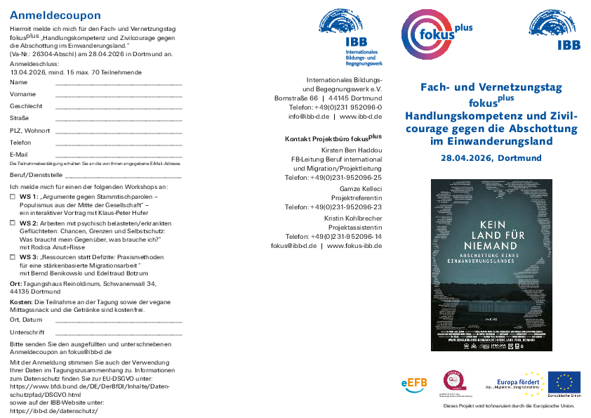 Mit dem EU geförderten Projekt fokusplus treten wir mit Ihnen in einen Dialog zu aktuellen Fragen zum Thema Migration. Der demografische Wandel in Deutschland und globale Migrationsbewegungen, die auch zu Zuwanderung führen, bedeuten Chancen und Herausforderungen, denn auch unser Land wird vielfältiger. Der gesellschaftliche Zusammenhalt, Integration und soziale Inklusion sind gemeinsame Aufgaben, an denen jede/r einzelne individuell mitwirken kann und zugleich Themen für Arbeitswelt und Beratungsstellen.